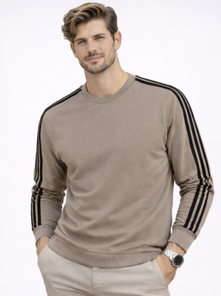 Modern fermuar detayı ve şeritli yaka tasarımı sayesinde klasik polo tişörtlerden ayrılan bu model, hem sade hem de dikkat çekici bir stil sunar. Günlük şıklığını önemseyen erkekler için gardırobun vazgeçilmez parçalarından biri olmaya adaydır.